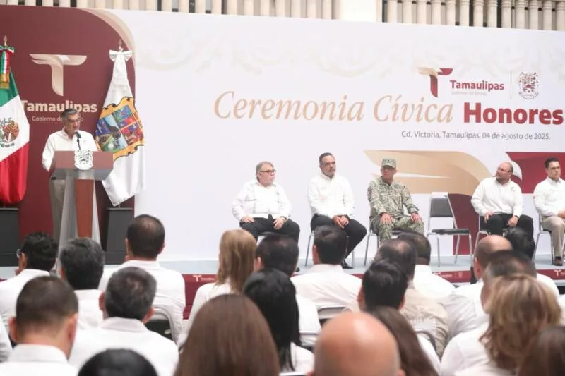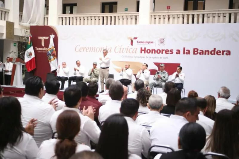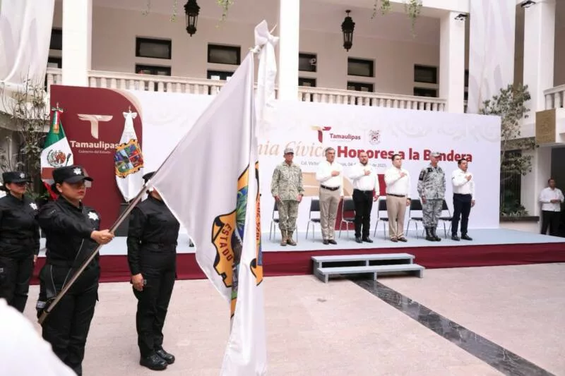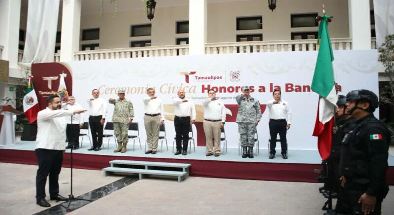 Al dar la bienvenida a la ceremonia cívica, Héctor Joel Villegas González, secretario General de Gobierno, hizo un llamado a las y los servidores públicos para seguir el ejemplo del gobernador Américo Villarreal y demostrar que “servir a Tamaulipas no es una tarea de escritorio, sino una causa que se lleva con orgullo, entrega y honestidad”.
