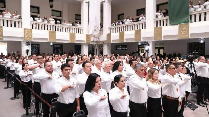 Como parte de la ceremonia cívica, el juramento a la bandera estuvo a cargo de Rómulo Pérez Sánchez, subsecretario de Enlace Legislativo, mientras que, Armando Núñez Montelongo, subsecretario de Transporte Público, y Tomás Gloria Requena, subsecretario de Gobierno, dieron lectura a las efemérides de la semana.