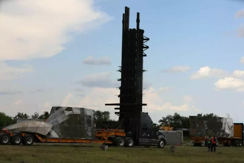 Hidalgo, Tamaulipas. – Con gran entusiasmo, fe y esperanza, habitantes del municipio de Hidalgo recibieron las primeras piezas que edificarán la monumental Virgen en El Chorrito.