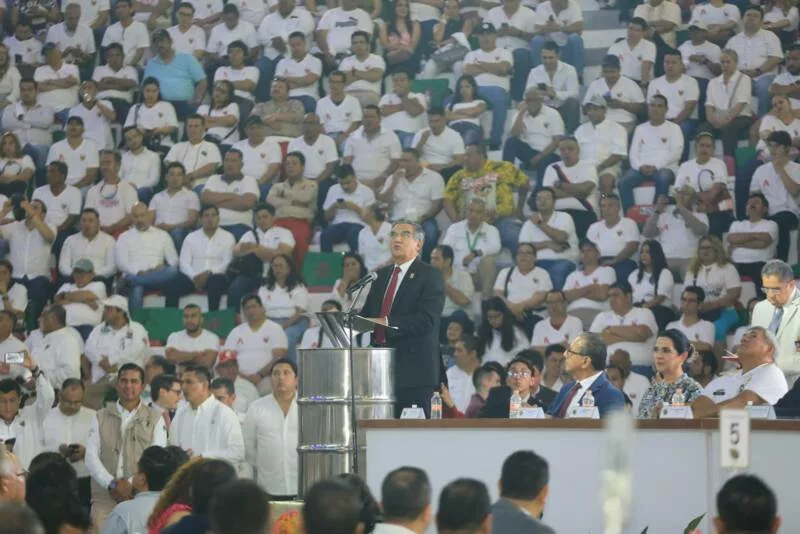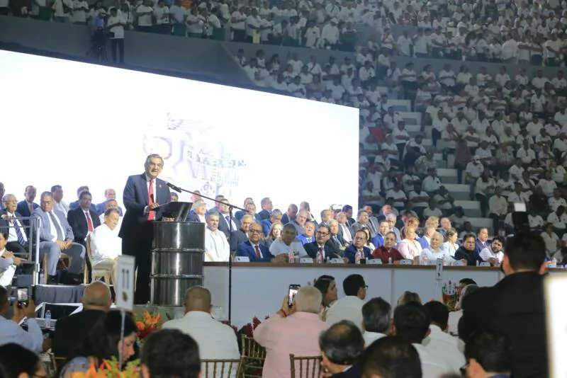 Desde el Centro de Convenciones de Ciudad Madero, junto con el secretario del Trabajo, Marath Bolaños López, representante de la presidenta Claudia Sheinbaum, y el director general de Pemex, Víctor Rodríguez Padilla, el gobernador de Tamaulipas recordó que él también fue «petrolero».