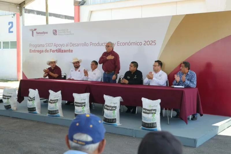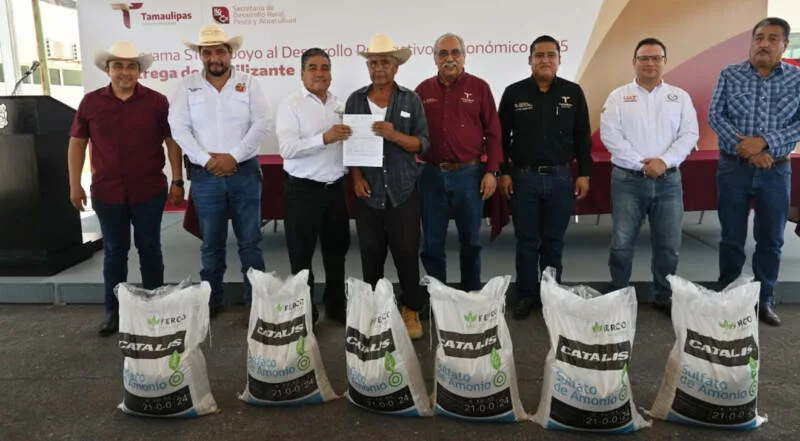 El secretario de Desarrollo Rural, Pesca y Acuacultura, Antonio Varela Flores, encabezó el arranque de la entrega de fertilizante en el municipio de Güémez, donde se benefició a 225 productores citrícolas con un total de 70.25 toneladas de fertilizante, con el objetivo de fortalecer la productividad y sostenibilidad del campo tamaulipeco.