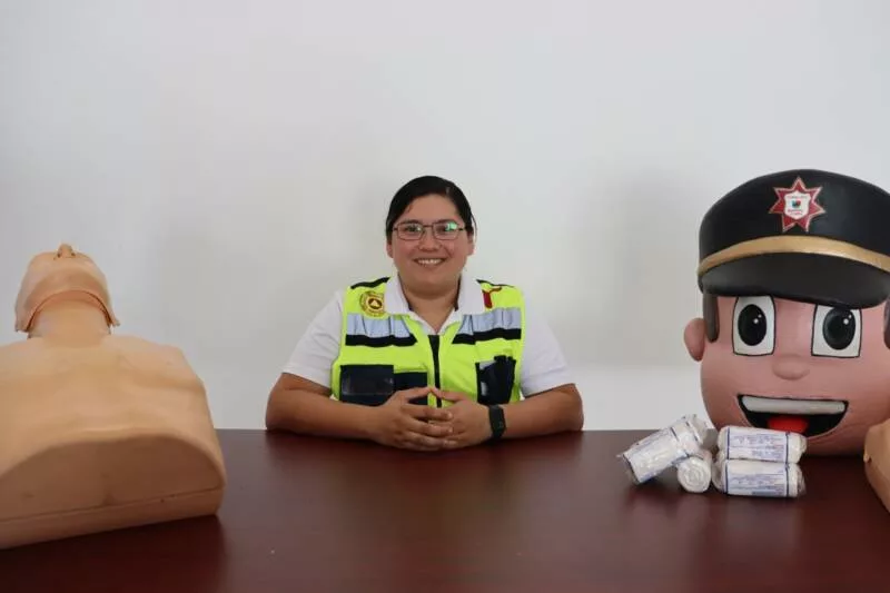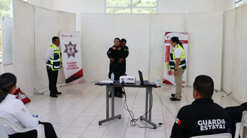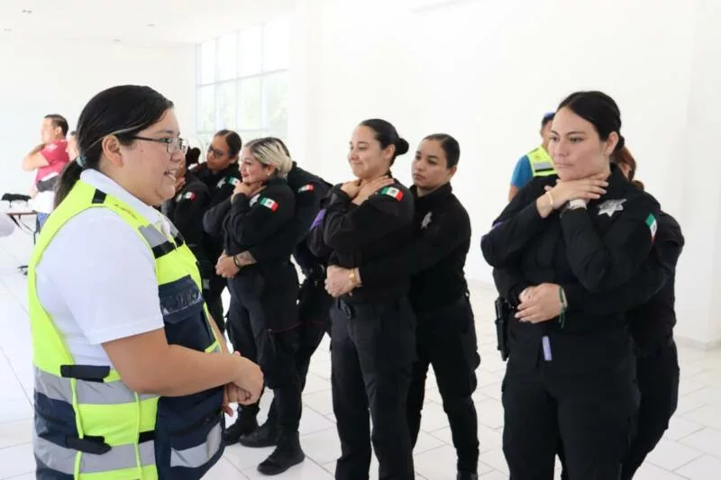 Con una duración de cinco horas, esta capacitación dirigida a 25 elementos de la Guardia Estatal de Género y personal administrativo de esta delegación tiene el objetivo de que las y los participantes conozcan las técnicas adecuadas de reanimación cardiopulmonar (RCP), desobstrucción de la vía aérea, atención a heridas, quemaduras y hemorragias.
