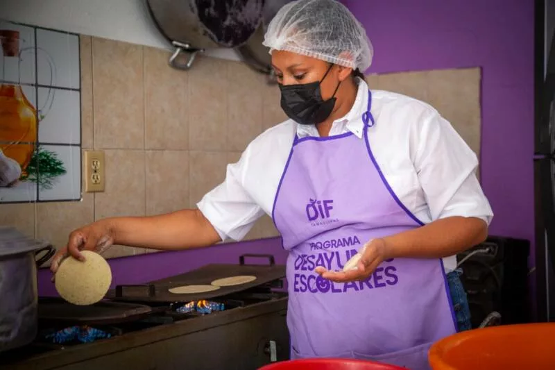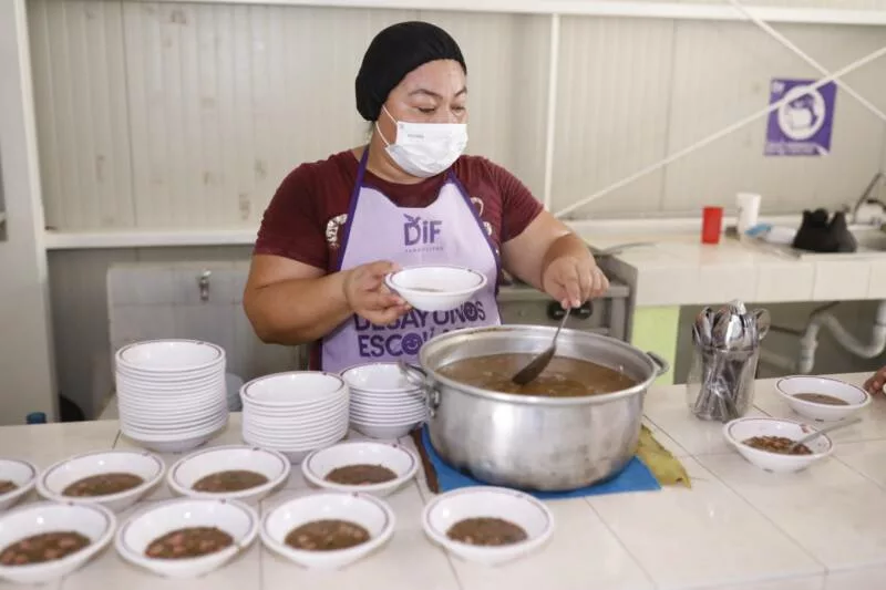 La funcionaria subrayó la participación activa de madres y padres de familia, quienes integran los Comités de Desayunos Escolares y colaboran diariamente en la preparación de los alimentos.