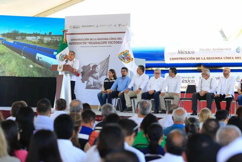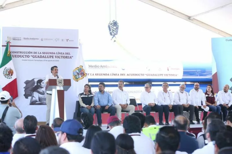 “Este día estamos frente a una obra que tiene memoria y futuro, ya que hace 38 años el ingeniero Américo Villarreal Guerra inició la construcción de la primera línea del acueducto, que por décadas nutrió de agua a nuestra capital. Hoy, su hijo retoma ese legado y lo proyecta hacia el futuro, consolidando una segunda línea que asegurará el suministro del vital líquido para las generaciones presentes y futuras de Ciudad Victoria”, mencionó.