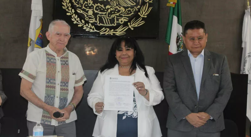 Tras las jornadas de evaluación, este 28 de agosto en la Sala de Juicios Orales de la FADYCS se realizó la clausura del proceso, donde el representante de la CONFEDE, Guillermo Genaro de la Rosa, hizo entrega de la constancia de acreditación del programa educativo a la directora de la facultad, Elda Ruth De los Reyes Villarreal.