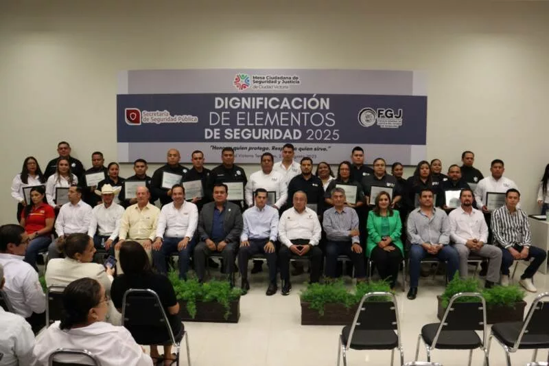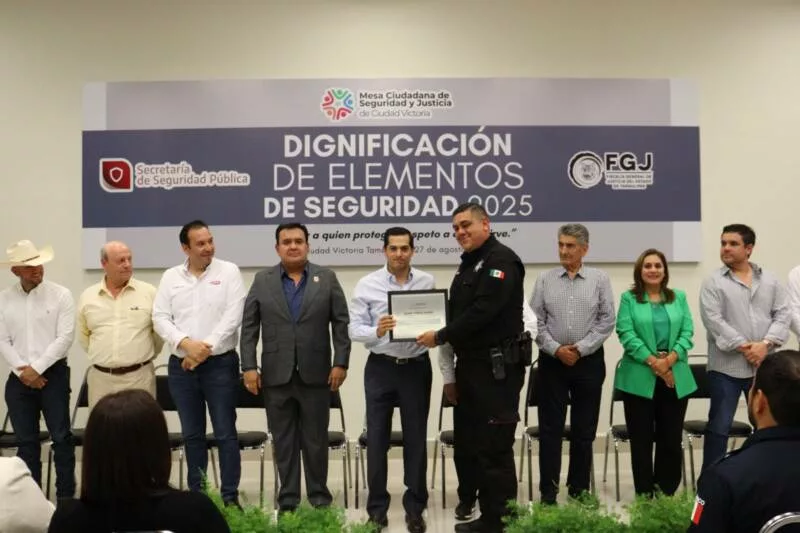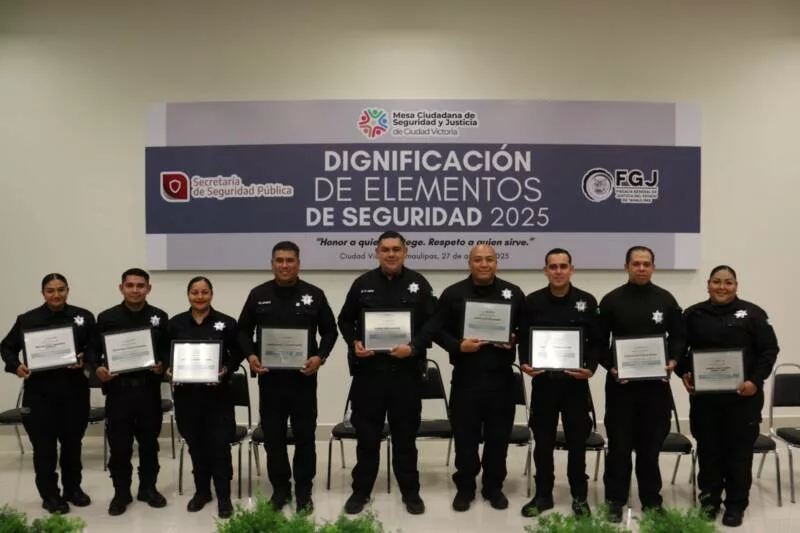 Ciudad Victoria, Tamaulipas. – En reconocimiento a su trabajo realizado al servicio de la población, la Mesa Ciudadana de Seguridad y Justicia de Ciudad Victoria, llevó a cabo una ceremonia de Dignificación de Elementos de Seguridad 2025 en la cual fueron galardonados 12 elementos de la Guardia Estatal y personal de la Fiscalía General de Justicia del Estado de Tamaulipas (FGJT).