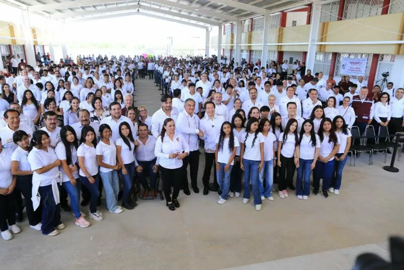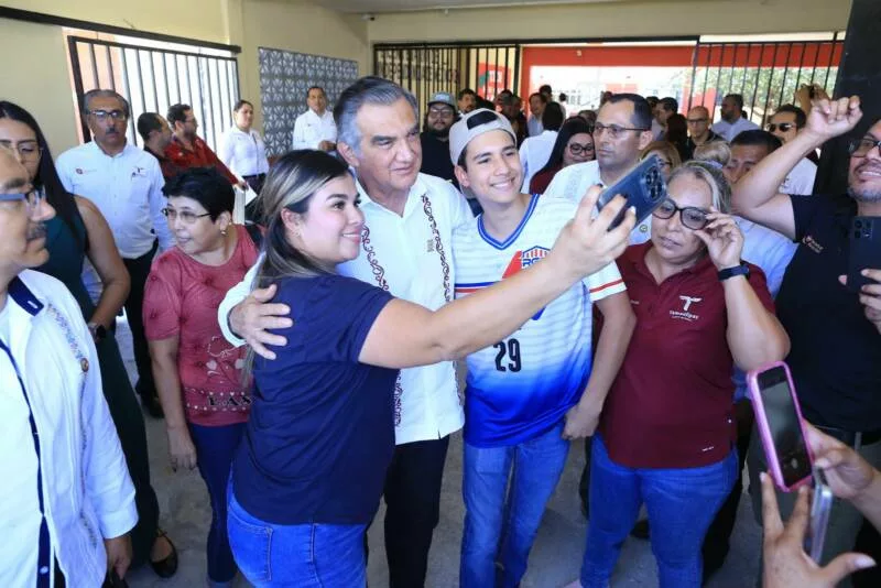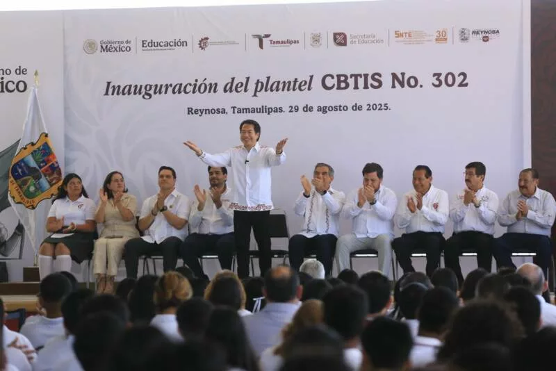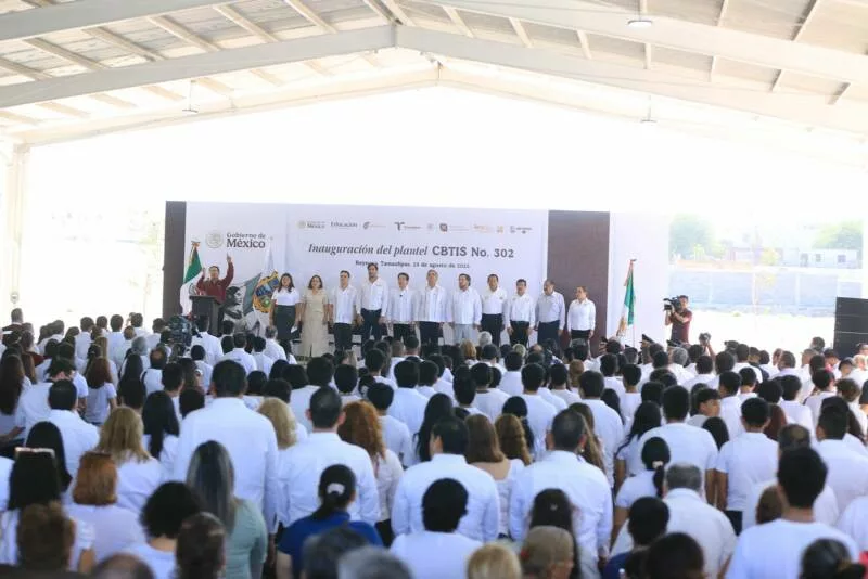En este acto Miguel Ángel Valdéz García, secretario de Educación en Tamaulipas, destacó que, gracias a estos apoyos, todas y todos los alumnos de educación media superior «cuentan con un banco, con un maestro y con un aula como esta. No se nos quedó ninguno fuera», expresó.
