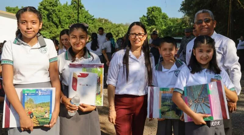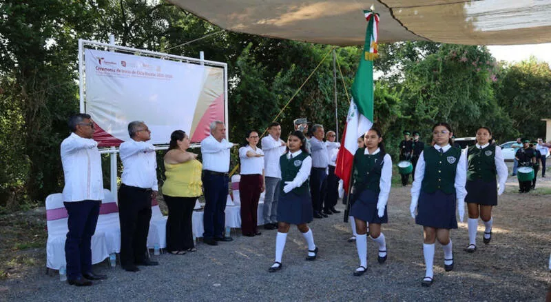 La sede de la ceremonia de inicio ciclo escolar, entrega de libros de texto gratuitos y paquetes de útiles escolares en educación básica, fue la escuela telesecundaria “Ramón Durón Ruíz”.
