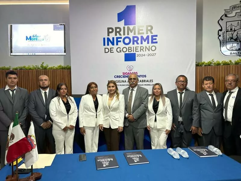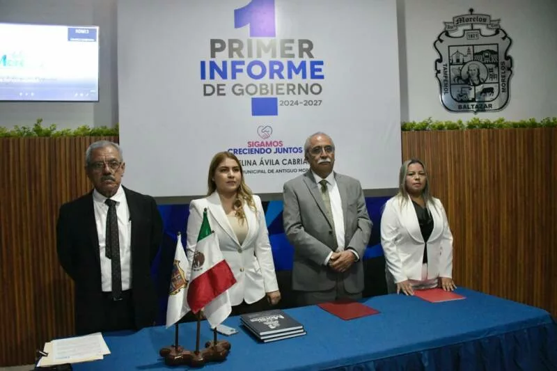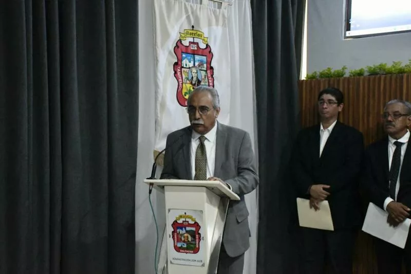 Durante su intervención, el secretario destacó la importancia de este informe, realizado en cumplimiento con lo establecido en el artículo 49, fracciones 13 y 39 del Código Municipal vigente, que da cuenta del estado que guarda la administración pública local a un año de haber iniciado su gestión.