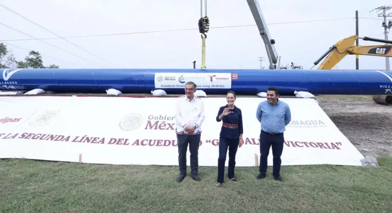 Ciudad Victoria, Tamaulipas. – La presidenta de México, Claudia Sheinbaum Pardo, afirmó que el Gobierno Federal está cumpliendo con Tamaulipas al poner en marcha la construcción del segundo acueducto Guadalupe Victoria, una obra que garantizará el suministro de agua para más de 350 mil habitantes de la capital del estado.