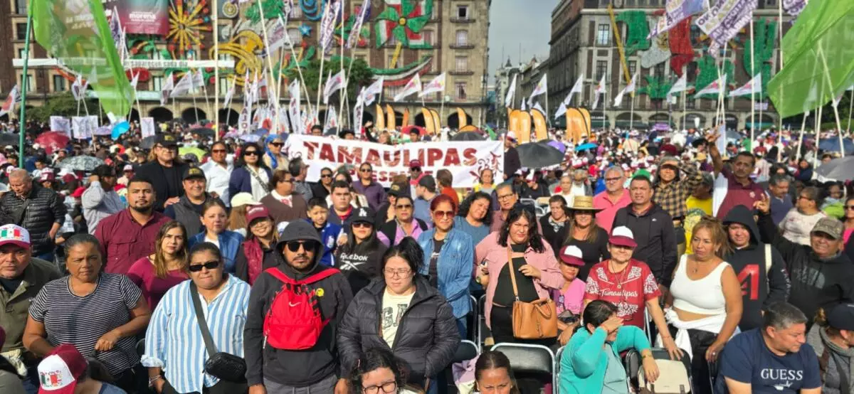 Ciudad de México. – Con un mensaje de confianza en el rumbo del país y en las mejores oportunidades para el desarrollo de la entidad, el gobernador de Tamaulipas, Américo Villarreal Anaya, acompañado por la doctora María de Villarreal, presidenta del Sistema DIF Tamaulipas, atestiguó el mensaje de la presidenta Claudia Sheinbaum Pardo, con motivo de su primer año de gobierno pronunciado en el Zócalo capitalino.