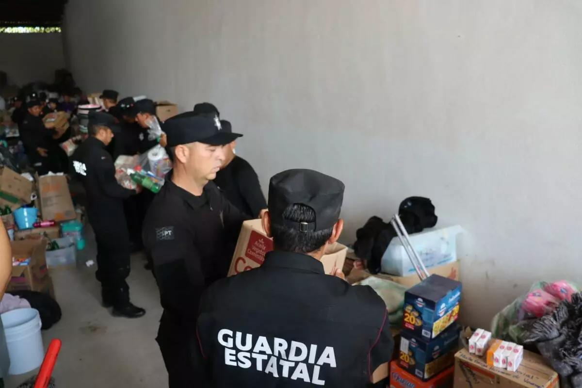 El apoyo fue resultado del centro de acopio instalado en el Complejo Estatal de Seguridad Pública, donde el secretario Carlos Arturo Pancardo Escudero invitó a participar al personal tanto operativo como administrativo de todas las áreas, direcciones y delegaciones de la Guardia Estatal en el estado.