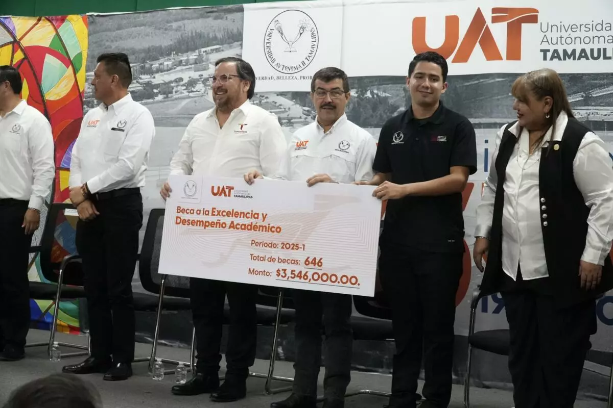 El rector de la Universidad Autónoma de Tamaulipas (UAT), Dámaso Anaya Alvarado, presidió la entrega de más de 8 800 becas de Excelencia, Desempeño Académico e ITABEC, un paquete de apoyos que fortalece la formación profesional y amplía las oportunidades educativas para estudiantes en todo el estado.