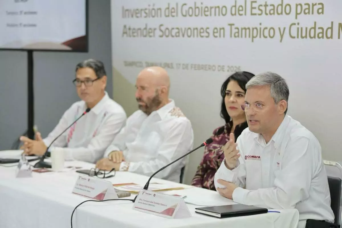 En rueda de prensa, el secretario de Recursos Hidráulicos, Raúl Quiroga Álvarez, acompañado por la alcaldesa de Tampico, Mónica Villarreal; el presidente municipal de Ciudad Madero, Erasmo González Robledo; y el gerente de Comapa Sur, Francisco González Casanova, explicó que la infraestructura hidrosanitaria de la zona presenta una antigüedad aproximada de 60 años, derivada de un rezago histórico en materia de conservación y rehabilitación.