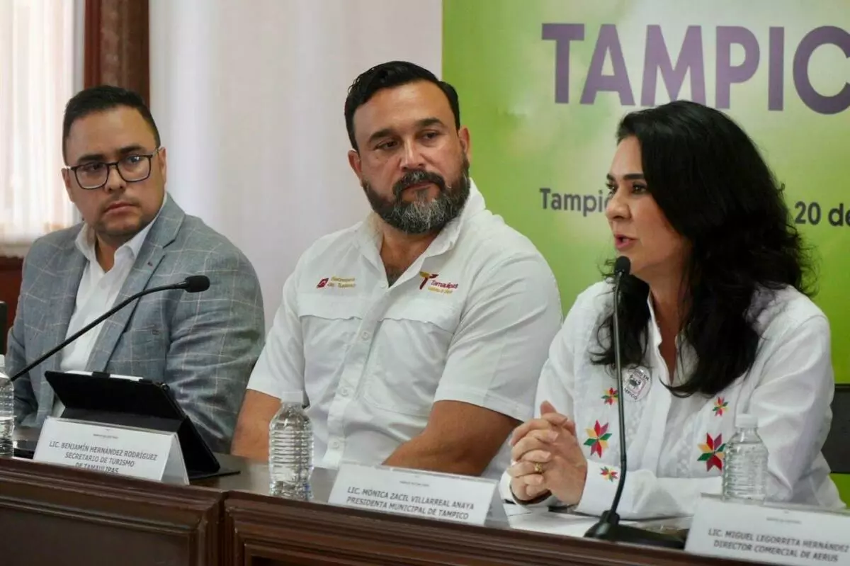 Junto a la presidenta municipal de Tampico, Mónica Villarreal Anaya, así como Miguel Legorreta Hernández, director Comercial de Aerus y Eder Alberto Jiménez León, administrador del Aeropuerto de Tampico dieron a conocer los pormenores de la oferta aérea.