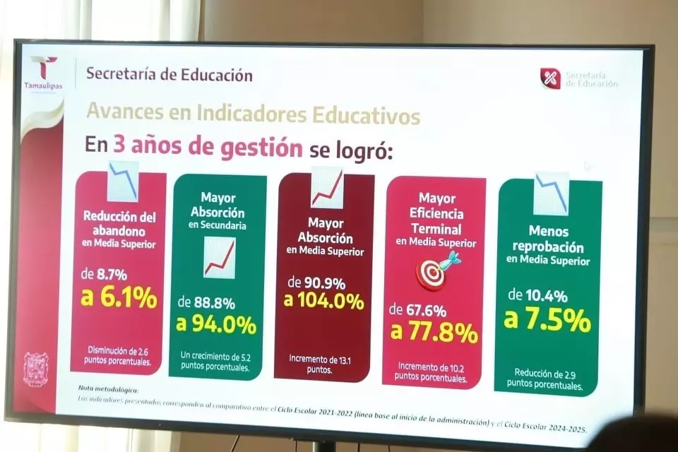 Ciudad Victoria, Tamaulipas.- Con la finalidad de que los planteles educativos tengan buenas condiciones físicas, las y los estudiantes cuenten con altos niveles de calidad educativa y una sólida formación humanista al concluir la administración estatal, la Secretaría de Educación presentó la Estrategia Tamaulipas Educa. Acompañando al gobernador Américo Villarreal Anaya, el secretario de Educación, Miguel Ángel Valdez García, informó en rueda de prensa que Tamaulipas Educa se implementará con una meta clara: alcanzar mejores indicadores en materia educativa y hacer de la educación una verdadera herramienta de la transformación. “Son 10 compromisos, son 100 acciones para los próximos mil días; es una agenda que hará que la Secretaría de Educación en la administración del Dr. Américo Villarreal Anaya tenga lo que la presidenta y él siempre han pedido al secretario de Educación: que la educación sea un derecho para todos, no una mercancía, y que sea un derecho con calidad y con humanismo”, enfatizó. Entre los 10 compromisos se encuentran: el número 1, que la Nueva Escuela Mexicana se consolide, innove y transforme; el número 2, que todas y todos los estudiantes alcancen aprendizajes fundamentales; el número 3, que las trayectorias educativas sean continuas y completas; el número 4, que se consolide en las escuelas una vida saludable, bienestar integral y desarrollo humano; el número 5, que el arte, el deporte y la cultura se desarrollen en las comunidades educativas. El compromiso número 6, que las maestras y los maestros continúen siendo protagonistas del cambio; el número 7, que la escuela, la familia y la comunidad se unan por la educación; el número 8, que se optimice la organización y el funcionamiento del servicio educativo; número 9, que las escuelas sean espacios seguros, dignos e inclusivos para la convivencia y el estudio; y número 10, que la educación superior impulse el desarrollo y la transformación. Por su parte, el mandatario Américo Villarreal Anaya resaltó que la transformación educativa de Tamaulipas se conecta con todos los aspectos del desarrollo, beneficiándose con el mejoramiento de la infraestructura, de la inversión y la generación de puestos de trabajo, de la formación de capacidades técnicas y del fortalecimiento de una consciencia cívica y humanista, que aporta a la paz, la solidaridad, la prosperidad, la justicia y el bienestar. Durante la rueda de prensa, Silvia Martínez Guerra, subsecretaria de Planeación, destacó la inversión de 2 mil 600 millones de pesos en construcción, rehabilitación y equipamiento; la inversión de 153 millones 297 mil 525 pesos en uniformes escolares y de 792 millones 254 mil 712 pesos en útiles escolares. También se destacó que Tamaulipas es el único estado con cobertura del 100 por ciento de la Política de Aprendizajes Fundamentales en 1º, 2º y 3º grado de primaria, en donde todas y todos los estudiantes cuentan con habilidades fundamentales de lectura, escritura y pensamiento lógico. Además de alcanzar el tercer lugar nacional en absorción en educación media superior y cobertura en educación superior, incluyendo posgrado. Se mencionó la creación del Centro Estatal de Inteligencia Artificial y Tecnología Educativa y el programa de internet satelital, alcanzando una cobertura del 100 por ciento en las escuelas rurales y de 85 por ciento en la zona urbana. Además, se contó con la participación de Claudia Anaya Alvarado, titular del ITACE, quien subrayó el éxito en la implementación del modelo dual, la creación de nuevas carreras como ciberseguridad, inteligencia artificial, logística, semiconductores, microelectrónica y robótica y automatización. Asimismo, Julio Martínez Burnes, director del COTACYT, resaltó la labor de formación de talento del consejo, con actividades como: el Día Internacional de la Mujer y la Niña en la Ciencia, el Museo Móvil y la Expo Ciencias Tamaulipas. Así como que la entidad cuenta con 630 investigadores SNII y que estos participan en el diseño de proyectos para resolver demandas específicas sobre los retos más importantes que tiene Tamaulipas.