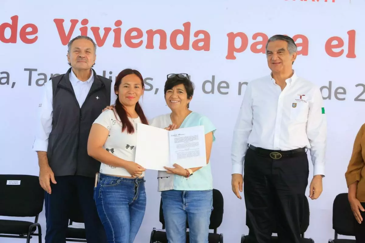 El gobernador Américo Villarreal Anaya agradeció la distinción de realizar la entrega de vivienda desde Tamaulipas y destacó el respaldo de la presidenta Claudia Sheinbaum y su preocupación para impulsar el bienestar y el desarrollo humano.