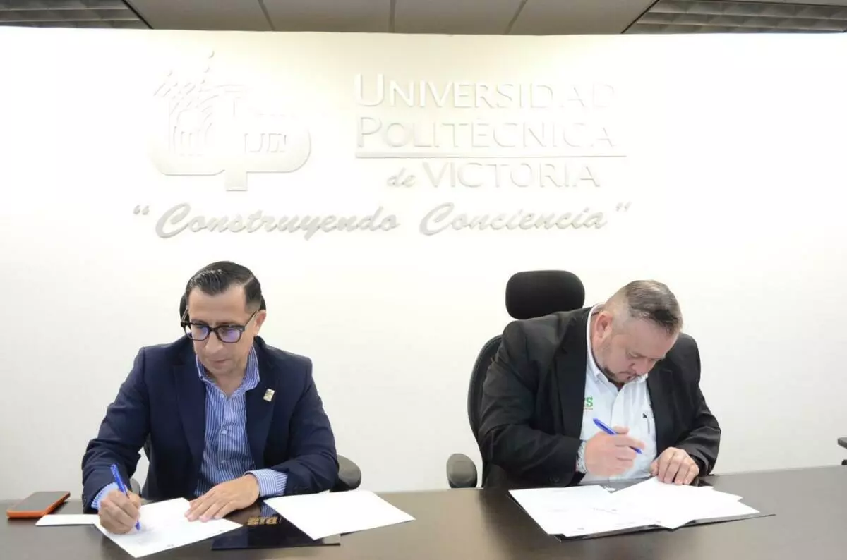 Ciudad Victoria, Tamaulipas.– La Universidad Politécnica de Victoria (UPV) firmó un convenio de colaboración con la Cámara Nacional de Comercio en la capital (CANACO Victoria), con la idea de fortalecer el emprendimiento y la vinculación entre el sector académico y el empresarial. El rector de la universidad, Luis Felipe Castillo Cortés, y Federico González Sánchez, presidente de la cámara de comercio, firmaron este acuerdo de trabajo que impulsará el talento y la formación de calidad tanto de las y los universitarios como de los egresados de esta institución. Castillo Cortés destacó la relevancia de este convenio que suma esfuerzos en beneficio de ambas instituciones y, especialmente, de la comunidad estudiantil de la universidad, subrayando que este acuerdo les permitirá realizar sus prácticas profesionales en cualquiera de las mil 600 empresas afiliadas a CANACO Victoria, e incluso incorporarse posteriormente al ámbito laboral. Por su parte, el líder empresarial agradeció al rector la disposición para consolidar esta alianza estratégica y manifestó su satisfacción por contar ya con egresadas y egresados de la UPV en empresas asociadas, quienes —dijo— “han demostrado un alto nivel de preparación y han realizado valiosas aportaciones al desarrollo y fortalecimiento de los negocios”, puntualizó. En el marco del convenio, Othón Cano Garza, director de Vinculación de la universidad, presentó la oferta académica y el Modelo Educativo de la UPV, basado en competencias, el cual contempla una formación profesional con un 70 por ciento de práctica y un 30 por ciento de teoría, desarrollada en aulas, laboratorios y talleres especializados. Este encuentro entre la academia y el sector productivo reafirma la alineación de las voluntades y abre nuevas oportunidades para el desarrollo económico y la formación de capital humano altamente competitivo en Tamaulipas, acorde con la visión que impulsa el gobernador Américo Villarreal Anaya. Durante el protocolo de este convenio se contó también con la presencia del empresario Guillermo Avendaño Vidal, así como de Eduardo Maximiliano Martínez, encargado de la Secretaría Académica de la universidad, y de los directores de los Programas Educativos de la Licenciatura en Comercio Internacional y Aduanas y de la Licenciatura en Administración.