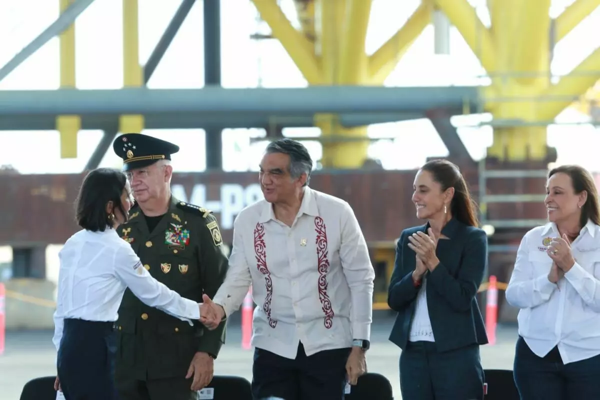Durante el evento celebrado en el Patio Industrial de Pueblo Viejo, Veracruz, y junto a la gobernadora anfitriona Rocío Nahle García, al pie de las nuevas plataformas petroleras marinas construidas por Petróleos Mexicanos, la presidenta Claudia Sheinbaum destacó la presencia de Américo Villarreal, a quien consideró «un hombre nacionalista y visionario».