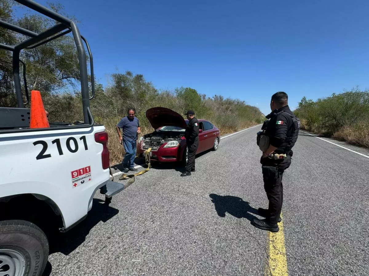 El conductor solicitó apoyo para remolcar el vehículo hacia una zona donde pudiera recibir atención mecánica, por lo que los elementos estatales iniciaron el acompañamiento hacia el municipio de Villa de Casas.