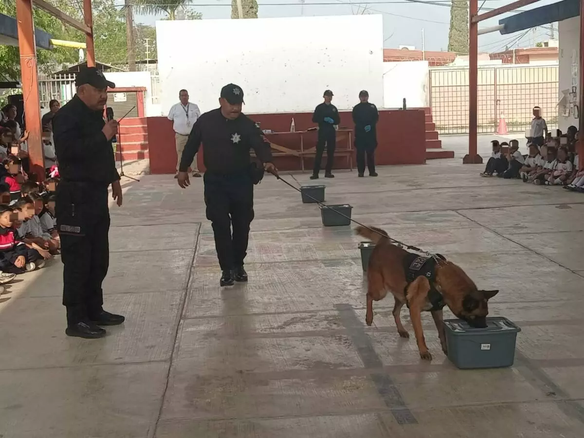 Niñas y niños vivieron una jornada de aprendizaje al recibir la visita de “Max”, un canino de la Guardia Estatal cuya misión es detectar narcóticos.