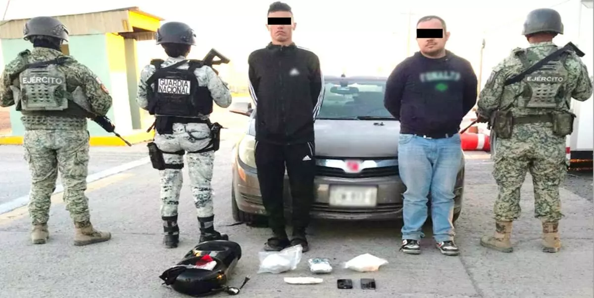 -En Cd. Juárez, elementos de Guardia Nacional (GN) y Ejército Mexicano detuvieron a dos personas a bordo de un vehículo, les aseguraron 3.5 kilos de metanfetamina y dosis de cocaína.