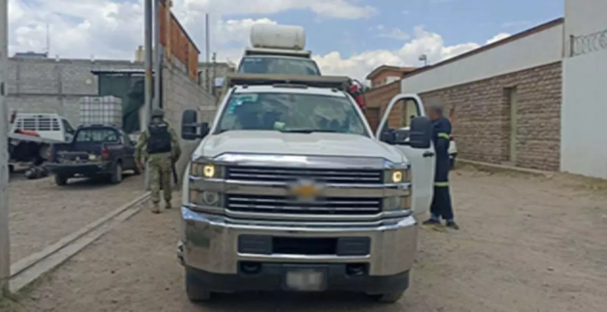 -En San Juan del Río, elementos de GN, Ejército Mexicano, FGR y Policía Municipal catearon un inmueble, aseguraron 14 vehículos, un tanque cisterna con hidrocarburo y un tanque de gas LP.