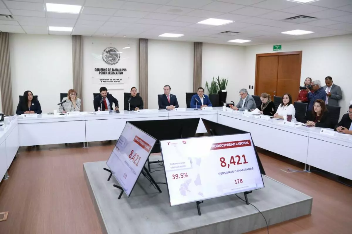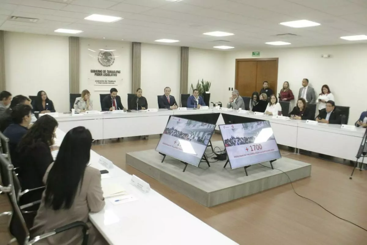 Ciudad Victoria, Tamaulipas.– La consolidación de políticas públicas en materia laboral permitió avanzar en la generación de empleo, la capacitación y la defensa de los derechos de las y los trabajadores en Tamaulipas; estos fueron los resultados presentados por el secretario del Trabajo y Previsión Social, Luis Gerardo Illoldi Reyes, al comparecer ante la comisión correspondiente del Congreso del Estado, presidida por la diputada Gabriela Regalado Fuentes y sus siete integrantes, así como ante el presidente de la Mesa Directiva, Sergio Arturo Ojeda Castillo, en el marco de la glosa del Cuarto Informe de Gobierno de Américo Villarreal Anaya.