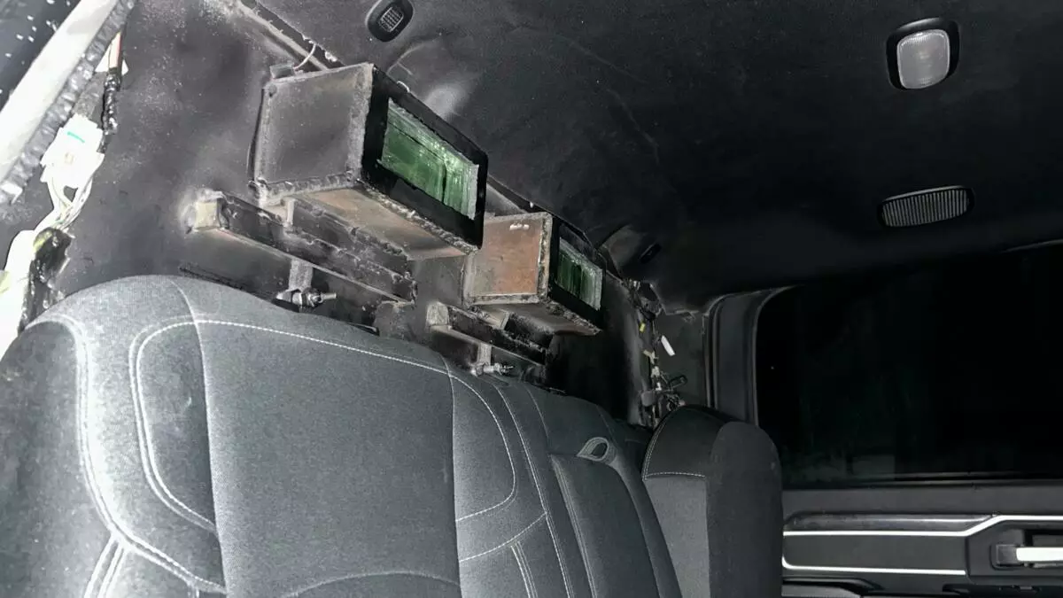 La unidad fue inspeccionada y verificada, tras lo cual se identificó un reporte de robo en el extranjero y blindaje artesanal en el medallón trasero, por lo anterior, fue puesta a disposición de la Fiscalía General de la República (FGR).