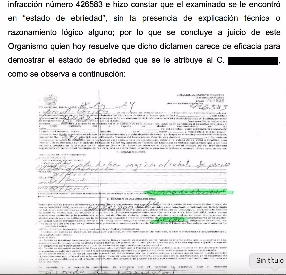 Otro de los puntos mencionados en la recomendación es que en el certificado médico exhibido por el Director de Tránsito no se especifica como es que el doctor que la firmo llego a la conclusión de que el responsable conducta la unidad en estado de ebriedad.