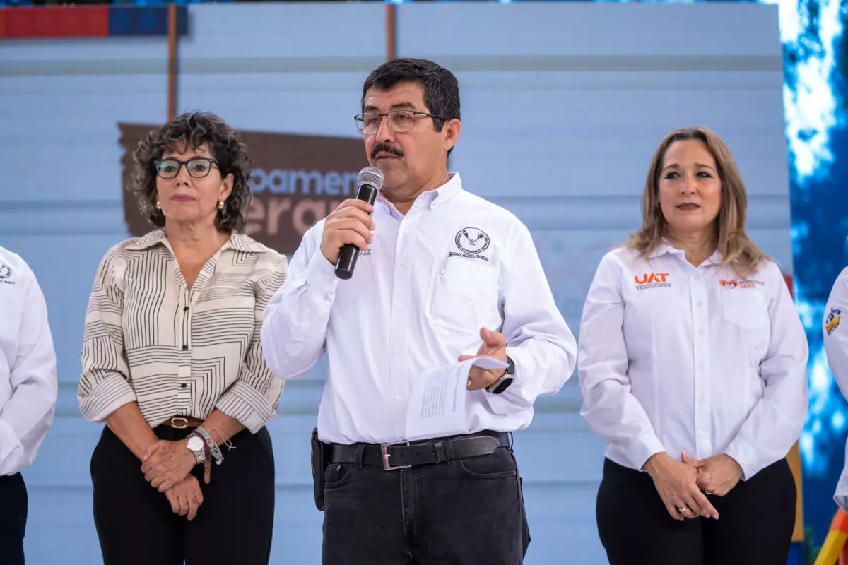 El MVZ Dámaso Anaya Alvarado, rector de la UAT, el vicealmirante Carlos Eduardo L'Eglise Escamilla, Comandante de la Primera Región…