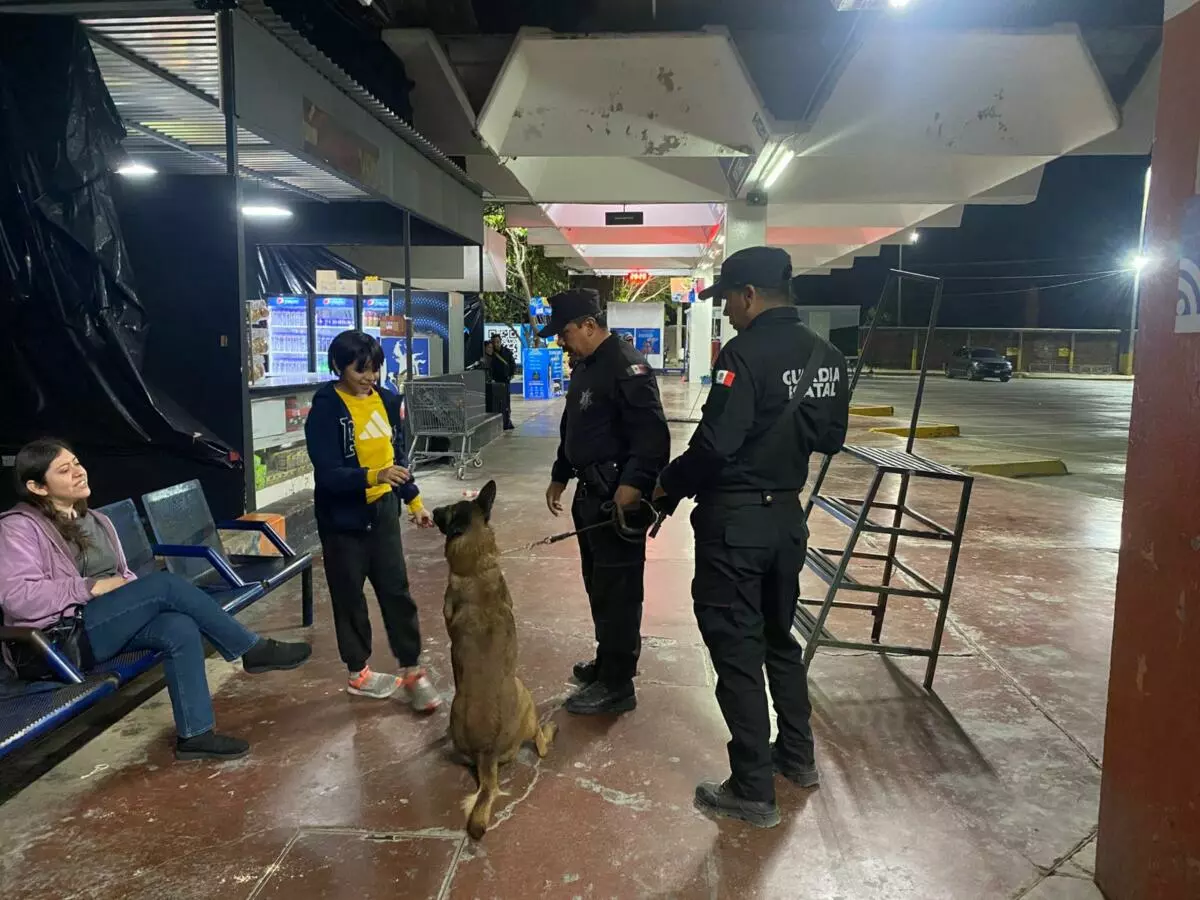 Guardia Estatal refuerza vigilancia con binomios caninos en la Central de Autobuses de Victoria